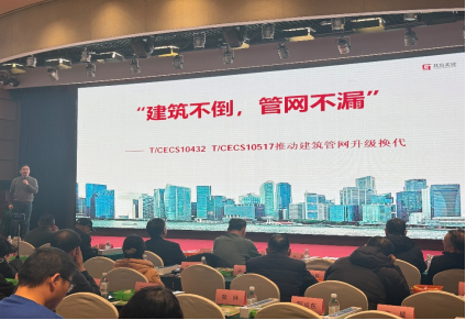 1月23日,西安给水排水学术交流会和浙江省给水排水学术年会同时在西安和杭州召开。作为西安年会的主要协办单位公司董事长陆姚松先生、副总经理温源先生在西安华山国际酒店参会。温源先生在大会上作了“建筑不倒,管网不漏”的主题发言,通过解读现行标准条文,演示安装视频,报告性能测试效果,用客观权威的事实回答了“好房子”背景下解决传统连接工艺各种沉疴顽疾的优选方案。