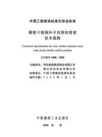 由华东建筑集团股份有限公司主编,数十家国内大中型设计院参编的中国工程建设标准化协会标准《薄壁不锈钢环卡双密封管道技术规程》T/CECS 1988-2025,已于 2026 年 1 月 1 日正式施行。