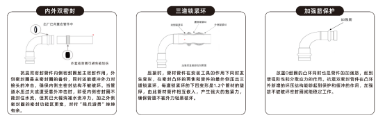 抗震双密封技术采用 “O 型圈 + 矩形密封圈” 的内外双密封结构,搭配三道锁紧环设计,形成双重防护屏障。实验数据显示,该技术应用下的 DN300 管道,在 15° 偏转、3064kg 拉力下仍能保持零渗漏,将管道漏损率从传统工艺的 7.5% 降至 0.5%。这种极致密封性能,确保即便建筑在极端场景下出现轻微位移,管网也能稳定运行,真正实现 “管网不漏” 的承诺,解决了 “好房子” 建设中渗漏这一核心民生痛点。