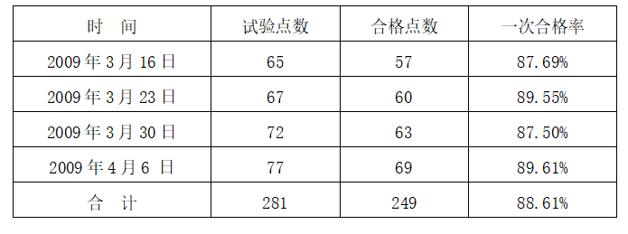 沟槽连接施工规程CECS151《沟槽式连接管道工程技术规程》第3.4.1条规定“沟槽式管接头采用的平口管件和附件,端部的槽口应在管件生产厂加工成型,不得在施工现场切割开槽。”反映出槽口质量对于沟槽连接安装非常重要。同时该规程在2017年修编时,修订内容全部是关于槽口加工的细节和要点,从侧面印证了沟槽连接现场预制环节确实存在较多不确定因素。以南京地铁一号线南延线共青团路站消防和空调水管道安装为例,项目部的QC小组对工程前期安装的管道进行水压试验,发现卡箍接头的一次合格率非常不理想,试验结果如下: