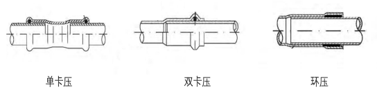 2、三道锁紧环。压接时管材管件在安装工具的作用下发生形变,在凸环的两侧和管件的外沿压出三道锁紧环,每道环的下嵌是1.2个管材的壁厚,由此管材管件互嵌咬合产生强大的抱紧力。