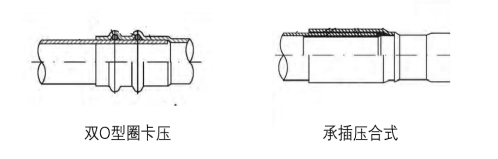同期,国内其他新型管道企业也纷纷开展研发攻关,希望能将挤压连接技术应用于更大口径的管道。最早出现的双O形圈卡压,其在管件头设置两个O形圈,但由于O形圈是靠密封材料的过盈量实现密封,两个O形圈的摩阻力使得管材在插入时变得困难,甚至可能造成密封件的损坏,这种连接方式现在仅用于DN50以下管道。随后出现的承插压合连接技术是将管接头的承口做成了双层的夹层结构,安装时在管材端涂抹厌氧密封胶后插入管件承口再用工具进行压接,该技术因采用涂抹厌氧液体胶密封而使用户望尔却步。